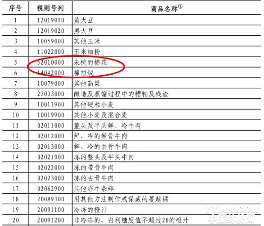 针对美国的第二轮清单,中国再次重拳出击。4月4日,中国商务部发布《关于对原产于美国的部分进口商品加征关税的公告》,将对原产于美国的大豆等农产品、汽车、化工品、飞机等进口商品对等采取加征关税措施,税率为25%,涉及2017年中国自美国进口金额约500亿美元,“未梳的棉花”、“棉短绒”也在名单中。