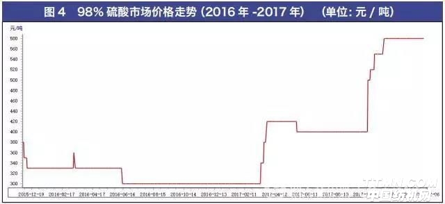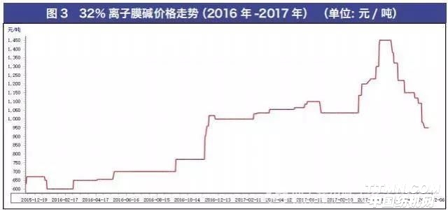 2017年9月-11月,32%离子膜烧碱平均价格由1035元/吨上升至1450元/吨,上涨415元/吨;硫酸价格400元/吨上升至580元/吨,上涨180元/吨。而由于“2+26”城市“煤改气”项目,致使北方天然气供应在第四季度出现极度紧张。一些地方原先“油改气”的汽车均加不上LNG天然气。天然气供应紧张,价格也迅速上升,直接导致以天然气为主要原料的二硫化碳价格由原先的4500元/吨上升至6000元/吨,上涨1500元/吨,而业内有些公司因为没有稳定的供货源,最终不得不接受7000元/吨~7500元/吨的二硫化碳。
