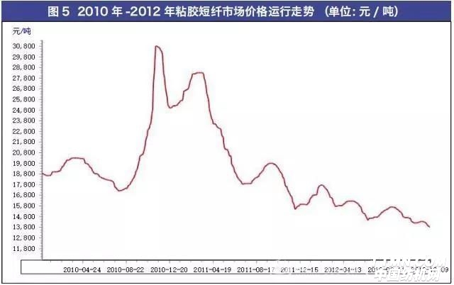 但仅仅隔了两天,市场上发现货源仍然紧张,这一次纱厂以及贸易商不相信粘胶短纤能够稳定供货,直接在整个11月中上旬出现了直线拉升的格局,市场价格直接被炒作成30800元/吨,业内当时最高成交有记录的一单则在32500元/吨。这一价格,创造了粘胶短纤自生产以来100多年的全世界历史最高价(见图5)。而随后粘胶短纤则经历了长达4年的一路下跌调整周期,整个行业在这次爆炒事件中,没有一个赢家,最终均已亏损告终,直接导致当年很多项目被迫后延。