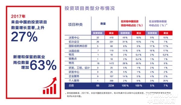 具体而言,2017年,海外投资者在法国达成了1298项投资决策,共计新增和保留了33489个就业岗位,即平均每周就有25项海外投资决策在法国达成,投资决策数量上升16%,其中来自中国的投资增长显著,并为法国带来了2234个就业岗位,增长63%。