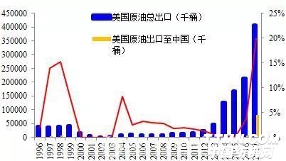 根据EIA数据,2017年全年美国原油出口平均为110万桶/天,比2016年增长52.7万桶/天。2017年美国原油出口翻番有两个原因:美国的原油产量平均为930万桶/天,比2016年增长50万桶/天;国际油价(布伦特原油)比美国的WTI油价高出3.36美元/桶,而2016年两者价差为0.40美元/桶。