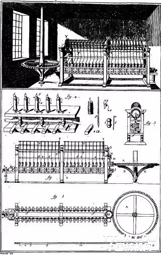 狄德罗《百科全书》收录的17世纪晚期和18世纪早期欧洲纺纱机示意图