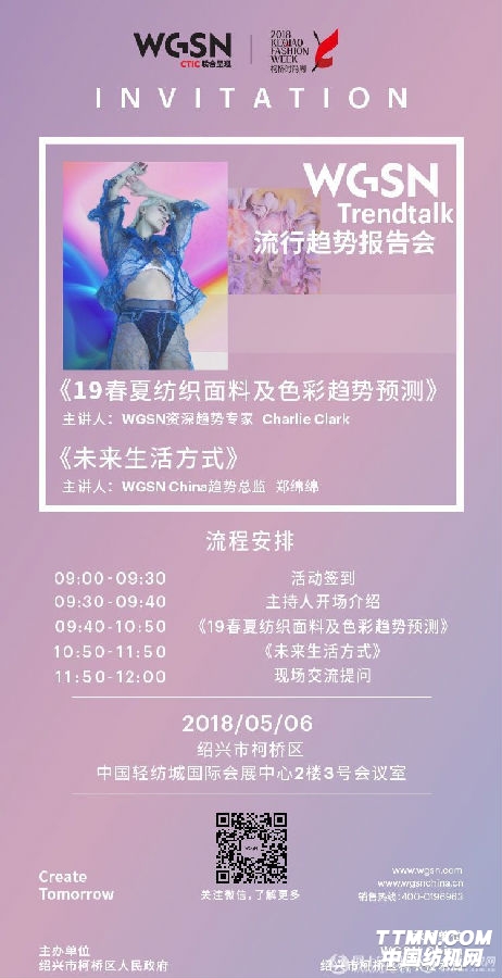 这天上午,作为2018柯桥时尚周(春季)的重磅活动之一,全球权威趋势预测机构WGSN首次走进柯桥,在中国轻纺城国际会展中心召开“WGSN流行趋势报告会”,为柯桥本地企业和创意设计人才带来最权威的国际流行趋势解读。