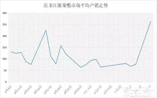 聚酯市场产销的激增,自然而然带动了聚酯厂家库存的进一步下降;目前主流厂家的库存已处于年内的偏低水平,几乎是回到了春节前的低库存状态。从中国绸都网统计数据来看,目前涤丝市场整体库存下降至5-16天;具体产品方面,其中POY库存降至4-9天,FDY库存至3-8天附近,而DTY库存则至14-22天左右。据闻,部分规格紧张的热销品,还需要排队等货!