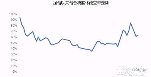 本周以来,储备棉挂牌资源中疆棉占比回升,但整体成交率较上周有所下滑,主要还是由于地产棉成交率回落导致。这一现象反映了市场的购买热情——在疆棉占比上升的情况下整体成交率回落,这不是一件好事情。同时,根据有关数据显示,全国新棉销售进度继续加快中,但相比前两周,加快的速度有所放缓。