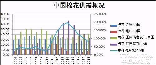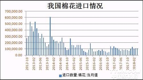 从供需形势看,国内棉花库存在2014年达到峰值,随后逐渐回落,国家由收储、抛储交替进行转为单纯抛储是库存减少的主要因素。据有关机构统计,2017年抛储结束后,国储棉库存量465万吨。2018年国储棉抛储从2018年3月12日开始,截止时间暂定为8月底,每日挂牌销售数量暂按3万吨安排,这样今年抛储结束后国储库存或许只有200万吨左右。恐怕对2019年市场的调控力不从心。而且,近期新疆天气因素影响新棉生长,如果今年的新棉产量明显减少,则国内棉花的供需矛盾将更为突出。