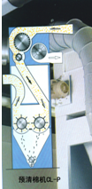 4、预清棉机CL-P(见图3)对于含杂较高的原棉及产品质量要求高的产品需要进行轻柔的预清除杂质,预清棉机CL-P可去除原料中的粗大的杂质,放置在混棉机与精细开包机之间,适当的气流速度可使棉花经受到很好的较长时间的清洁处理,使棉花的清洁度高而因经受的打击强度低,纤维损伤小。对预清棉机CL-P的手动操做简单,可灵敏的控制落棉量。预清棉机CL-P相当原特吕茨勒开清棉机的轴流开棉机的作用。预清棉机CL-P的合理应用 4.1、环锭纺:超长钎维-预清棉机CL-P 纺80-100英支精梳纱4.2、环锭纺:长钎维--预清棉机CL-P—FD-T及混棉机MX-1--精清棉机