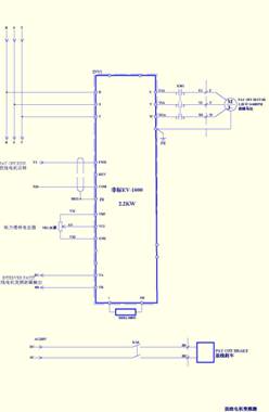 (图四) 从图三图四看出,PLC输入输出的只是简单的控制信号,很是简便。 2.3放线变频器(采用非标艾默生EV-1000系列)的电气原理图如图五: 依上图将张力摆杆电位器接入EV-1000的相应接线端子,调整变频器参数中的相关参数如下: