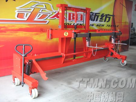 MJ-1000DElectro-hydraulic Palm Frame Upper Shaft Vehicle * 适用于190型及以上国产、进口喷水、喷气、剑杆织机(带棕框)。 * 行走为手推式四轮同步,电动上、下轴和升降。 * 设计新颖的棕框托架功能可提高棕框上机效率,国内独创。 * 采用原装意大利或台湾进口一体式电动泵站。 * 采用专配动力牵引电池,高效持久。 * 液压系统采用进口活塞杆和密封件,避免漏油,延长使用寿命。