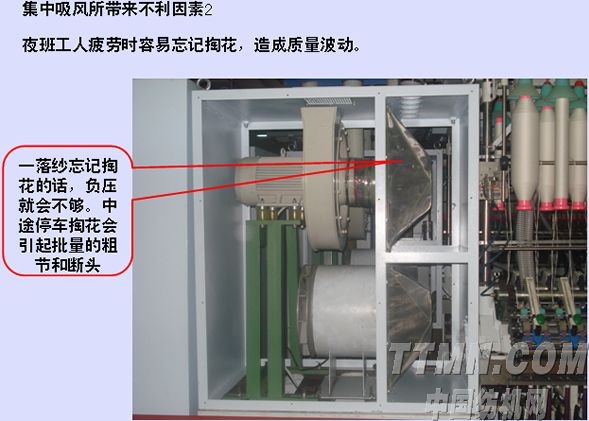 以上是紧密纺集中吸风在老车间改造的通病,现在还没有很好的解决办法