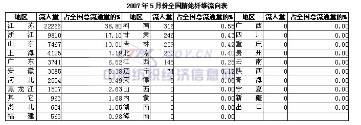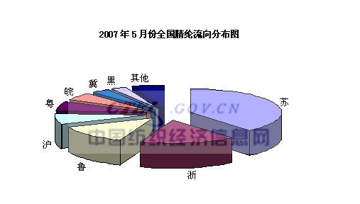 图2.2.2 2007年5月份全国腈纶流向分布图