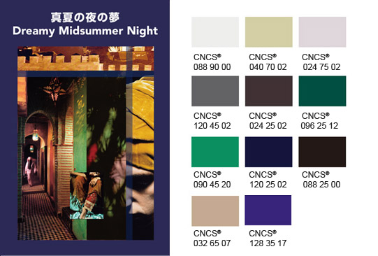 色彩:宝石色系、一个遥不可及的梦想,依稀带着神秘的气息。一组带着神秘戏剧化幻想的泥土色调和金色碰撞。