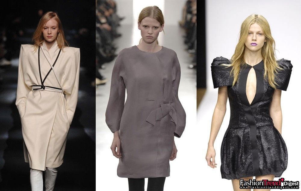 当然具有复古主义倾向的廓型也依然是重要的,比如具有中世纪风格的斗篷型,超大的沙漏型、明显受到Poiret影响的蹒跚型以及具有东方意味的毯式包裹型等,这也演变出一系列趋势性的单品,包括有袖孔的卵型斗篷式外套、沙漏型大衣以及蹒跚裙(裤)、一片式披巾围裹大衣等。