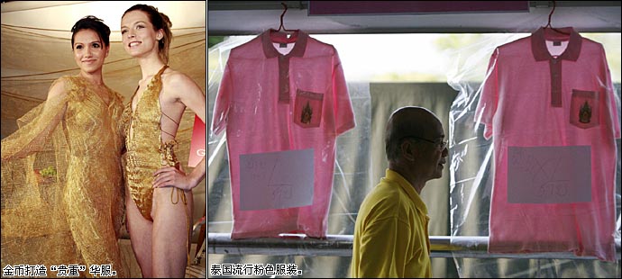 2007年金价持续攀升引发了“黄金热”,日本服装设计师从中获得灵感,将黄金作为时尚元素融入设计,打造出一件共饰有1600枚金币、总价值超过100万美元的华服。 去年11月在东京亮相的这件华服是名副其实的“贵重”服装。设计师说,金币的分量着实不轻,如何将这些金币固定在衣服上是他们最大的制作难题。但尽管“金币装”重量可观,穿它的模特走在T型台上,仍然脚步轻盈,身姿优雅。
