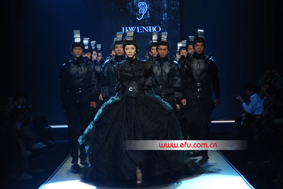 此次发布会的主要作品,仍然以在米兰T台上的款式和风格为主。计文波的设计灵感来自于秦代兵马俑,演出全程20个模特以秦代兵马俑造型当背景,这些典型的中国文化元素融合在一起,整场设计不但走在世界流行趋势前沿,更将中国文化元素的精髓及至融合到了时尚概念中,将中国文化底蕴的深刻含义完美的表现出来,并将利郎品牌对于历史演变、文化复生和衣装的功用等因素有机结合,将时装概念进行全新的东方式的演绎,将品牌对中国男人、中国精神、及中国品牌的形象展示给众人。