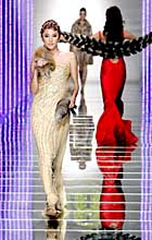 双宫缎、意大利织锦缎、蕾丝和云锦的绝妙配搭;西式半杯礼服、骨架胸衣、百褶裙、鱼尾裙的全新演绎。 中式的云肩领、月华裙、裥干裙的运用;中国团扇、宫灯、如意和铠甲等传统元素的结合。 这一切的惊喜都来自11月3日晚本土奢侈品牌NE·TIGER高级华服发布——一场名为“锦绣国色 华夏礼服”的时装秀。 10年前,中国国际时装周与眼下的国际“范儿”相差甚远。张志峰回忆道,1997年,时装周并不像现在场地选在五星级酒店、有炫目的T台造型,而是在北京民族宫,那是剧院式的格局。服装发布也是产品推介式的,观众大多是领导、服装行业的从业者,由于主办方并没有特殊的要求,参会的来宾并不注重着装。 在张志峰看来,当时剧院式的场地并不适合服装秀。“那时叫时装屋,实质上是订货会,年轻设计师以个人名义代表企业发布服装,企业既想推广产品又不愿投钱参展,这其中有很多矛盾。” 除了表现形式,当时的服装内容也与传统意识有很多冲突。对此,中国服装设计师协会主席王庆就深有体会。他告诉记者,有一件事令他印象深刻。“在1997年第一届时装周吴海燕的时装发布会上,由于模特没穿胸衣,我受到了批评还做了检查。那场秀要展示丝绸的轻薄、光泽,设计师受到当时国际上宣扬的女性解放思潮的影响,试图将女性从高级时装的束缚中解放出来,从而体现休闲自然的理念,因此要求模特不要穿胸衣。但是,那个年代模特和观众都很难接受。”