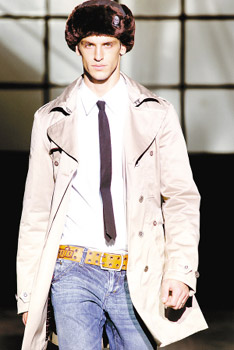 如今,帽子已成为一年四季中最易搭配、最容易展现个性魅力的最佳时尚配件。今年秋冬的报童帽、针织毛帽、绅士帽依然流行,尤其是Etro颜色出挑的软质绅士帽、Hermes造型突出的格子礼帽,Prada利用渐变晕染效果建筑起来的“毛毛大楼”,皆是把玩帽子的趣味戏法,令你忍不住想把每顶都据为己有。而异军突起的Kenzo飞虎队式皮帽,是时尚型男创造“顶上风光”的必杀利器,配衬军旅式羊毛背心、宽松尼龙长裤,更让男人在寒风中展现出一种令人无法抗拒的狂野魅力。