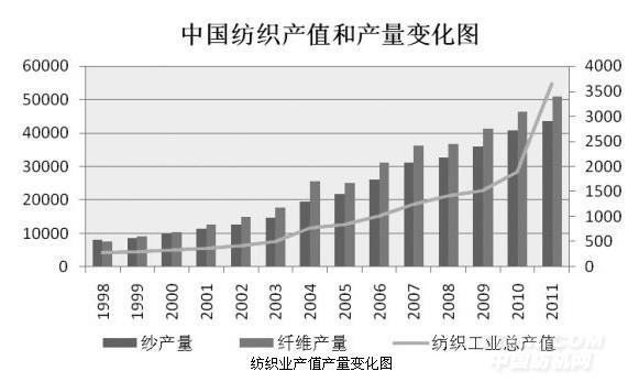 入世10年来,我国的纺织产业保持了高速发展的状态。2011年,规模以上纺织企业累计实现工业总产值54786.5亿元,同比增长26.8%。纺织行业总量继续保持增长,但增速明显回落,固定资产投资和新增项目增长缓慢,行业利润增长持续回落,主要原因是劳动力成本上升、原材料涨价、人民币升值。纺织产业的高成本时代已经到来,以廉价劳动力作为主要支撑的中国纺织服装业已逐渐丧失了成本优势。