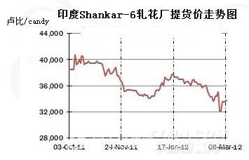 自印度政府3月5日发布棉花出口禁令以来,其国内棉价大幅走高,12日Shankar-6轧花厂提货价约33500-34000卢比/candy,折87.25美分/磅,较6日涨5.12美分,市场实际成交清淡。