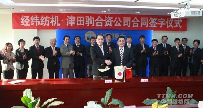 签字仪式上,王天凯会长指出,经纬纺机与津田驹的深度合作等待了近30年,这次双方合资成立经纬津田驹纺织机械(咸阳)有限公司体现了双赢,对中国纺织行业的发展是一件大好事。日本津田驹工业株式会社社长菱沼捷二说,合资公司成立后,将与经纬纺机密切合作,大力开拓中国织机市场,并向国际化进军。