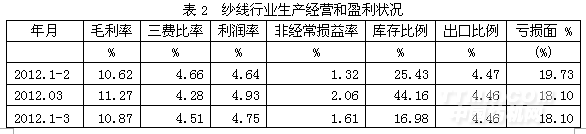 2纱线行业生产经营和盈利状况