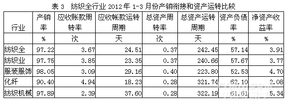 3纺织全行业产销衔接和资产运转情况