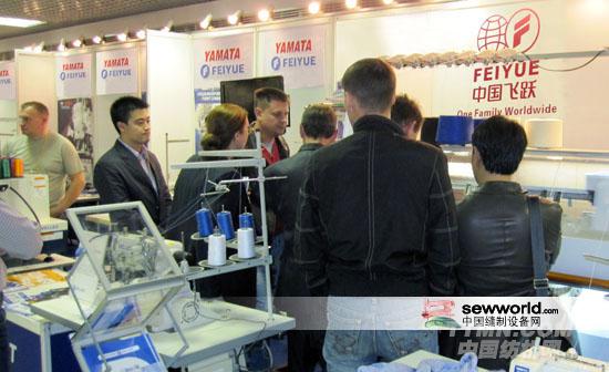 展会期间,来自莫斯科所有大型的服装市场和大型百货公司的采购代表,俄罗斯及中东欧其他国家服装纺织行业的贸易商、经销商、代理商及业内专业人士,世界上40多个国家的贸易商、经销商、代理商及业内人士等云集展会。“飞跃制造”以高品质、大品牌颇为引人注目,既展示了新品、树立了形象,又获得了不少订单。在飞跃展位上,专业客商对飞跃各类工业缝纫机、多功能家用缝纫机、电脑横机等产生浓厚兴趣,纷纷驻足试用或洽谈。公司业务员忙得不亦乐乎。