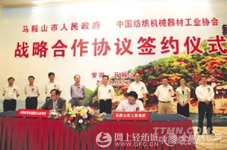 为更好地发挥马鞍山产业优势和资源优势,马鞍山承接产业转移示范区将投资建设国内首个大型智能纺织机械产业园,打造纺织机械器材研发、生产、加工、销售和会展基地。9月28日,马鞍山市人民政府与中国纺织机械器材工业协会签订了建设纺机产业园战略合作协议。