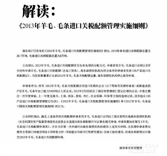 解读《2013年羊毛、毛条进口关税配额管理实施细则》