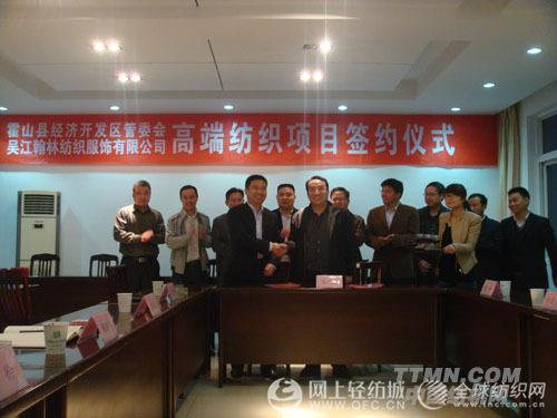 霍山县经济开发区与翰林纺织服饰公司签约仪式