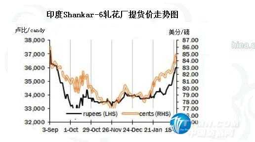 22日(上周五),印度Shankar-6轧花厂提货价为36000卢比/candy,与前一日持平;美元折价约84.30美分/磅,较前一日减0.60美分。 当日全国籽棉收购量折皮棉约13.6万包(2.31万吨),其中古吉拉特为4万包(6800吨)。旁遮普及哈里亚纳出现少量降雨。