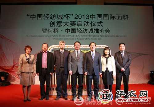 由中国纺织工业联合会主办,中国纺织信息中心、国家纺织产品开发中心、浙江省绍兴县人民政府等联合承办的“‘中国轻纺城杯’2013中国国际面料创意大赛启动仪式暨柯桥·中国轻纺城推介会”3月28日在北京隆重举行。