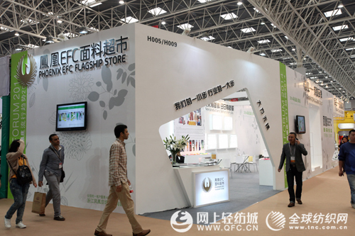 纺博会期间,柯桥东升路市场B区5楼,一家崭新的面料超市吸引海内外众多专业买家。这家面料超市,正是浙江凤凰庄纺织品有限公司近几年来重点推出的EFC(环保、时尚、实惠)面料超市。