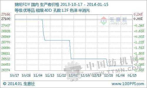 1月15日,江苏地区锦纶FDY40D/12F目前报价在26000元/吨,较前期价格下一样,经编市场开工6成左右,对锦纶采购较为一般,企业资金也较为紧张,难见明显改善。