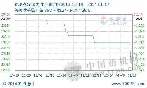 这周锦纶POY市场方面呈下跌态势,浙江某厂家POY86D/24F价格在23500元/吨,萧山产锦纶POY86D/24F价格在22700元/吨,价格都较前期下调500元/吨。客户加弹市场库存积压,拿货意向不大。