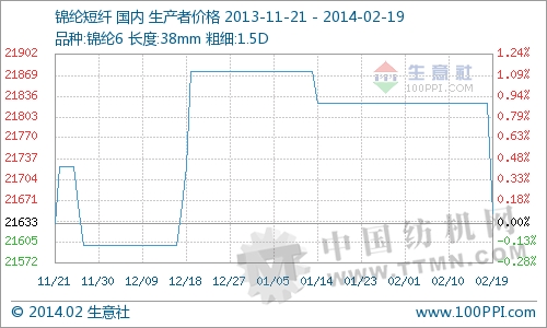 2月19日,浙江地区锦纶短纤1.5D×38mm报价稳定在21000元/吨,价格较前期下调500元/吨,岳化产锦纶短纤1.5D×38mm价格在22200元/吨,价格较之前下调200元/吨。近来原料市场价格坚挺,厂家复工缓慢,市场成交气氛不足,厂家观望心态较浓。
