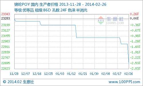 2月26日,苏州地区产锦纶POY86D/24F价格在21400元/吨,价格较前期下调1000元/吨。加弹纱线客户开工情况较好但采购尚不完全,锦纶企业多按需补货,市场缺乏大单提振。