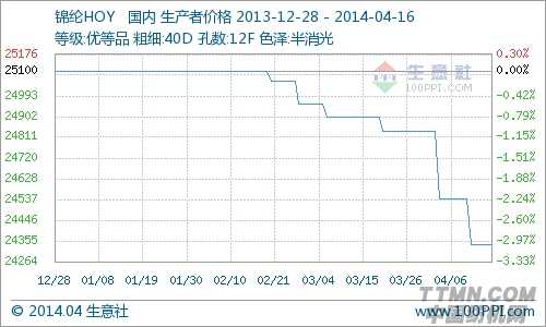 4月16日,浙江地区锦纶HOY40D/12F目前报价在24000元/吨,价格较上周保持不变,下游经编市场需求不足。目前厂家开工情绪一般,多出售为主。