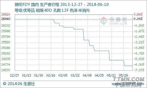 6月10日,江苏地区某厂家锦纶FDY40D/12F报价在25000元/吨,浙江地区锦纶FDY40D/12F报价在25700元/吨,价格都较前期一样。锦纶厂家开工在8成左右,市场处于疲软状态。