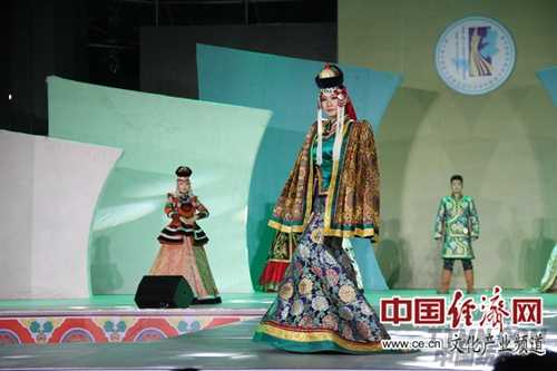 在第十届中国蒙古族服装服饰艺术节暨蒙古族服装服饰大赛上,参赛选手身着民族盛装。