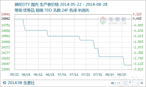据生意社锦纶价格监测,受原料市场及下游影响,最近三个月锦纶一直维持下跌态势。目前原料市场价格小幅回落,切片方面价格也开始下跌,下游纺丝成交量有限,后期价格或下调。