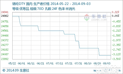 据生意社锦纶价格监测,受原料市场及下游影响,最近三个月锦纶一直维持下跌态势。目前原料市场价格再次回落,切片方面价格也开始下跌,下游纺丝成交量有限,后期价格或下调。