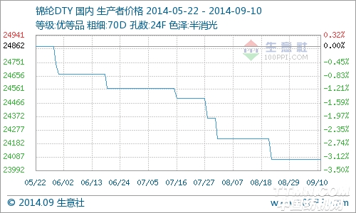 据生意社锦纶价格监测,受原料市场及下游影响,最近三个月锦纶一直维持下跌态势。目前原料市场价格再次回落,切片方面价格也开始下跌,下游纺丝成交量有限,后期价格或下调。