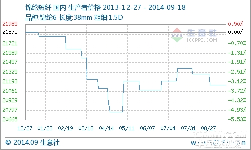 9月18日,浙江地区锦纶短纤1.5D×38mm报价在21200元/吨,价格较上周一样。目前原料市场价格再次下跌,已内酰胺主流价在16200元/吨,较前期下调200元/吨,厂家压力减弱,下游购买满足刚需。