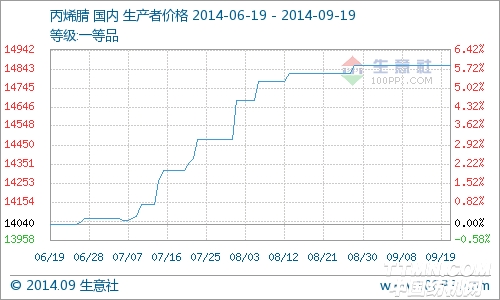 根据生意社价格监测显示,本周(9.15-9.19)丙烯腈市场行情平稳,工厂报价继续走稳,像齐鲁石化报价至15000元/吨,抚顺石化报价至14700元/吨。市场整体开工8.8成左右,丙烯腈厂家产品供应下游腈纶及合约客户为主,库存不高,现货供应仍偏紧。 下游市场气氛有所转弱,采购观望气氛较浓,维持按需跟进,市场气氛淡稳。 生意社分析师认为目前市场供应量仍不多,预计近期丙烯腈市场仍以横盘整理为主。