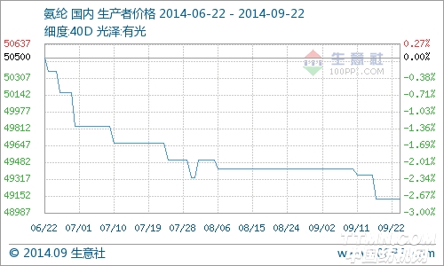 根据生意社价格监测显示,近期国内氨纶市场弱势盘整,截至目前,40D规格的主流商谈区间维持于45000-50000元/吨附近,20D规格的氨纶商谈区间位于56000-63000元/吨。市场成交重心总体持稳,但也有少数厂家略微下调促进成交。 下游方面受制于资金面因素,部分地区开工仍难有明显提升,现阶段刚需采购为主,观望心态明显。 生意社分析师认为,需求面偏疲软,加之年底前会有氨纶新增产能的集中投放,预计后期价格走势仍难言乐观。