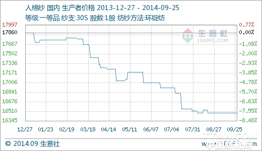 9月25日,江苏某厂家人棉纱30支价格在16200元/吨,价格较上月一样。目前粘胶短纤价格较为稳定,市场订单情况一般,环锭纺需求不旺,市场询盘气氛不浓。