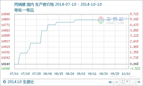 根据生意社价格监测显示,本周(10月6-10日)国内丙烯腈市场行情保持平稳。工厂报价维稳,中石化华东10月挂牌至14900元/吨,吉化报价至14600-14900元/吨,齐鲁石化报至15000元/吨,抚顺石化报价至14700元/吨(出厂)。吉林石化减至两条线运行,整体开工不足五成,本月对外销售极为有限。齐鲁石化丙烯腈装置运行正常,腈纶装置保持八成负荷,本月对外计划销售量亦不多。贸易商少量持货,但市场交投气氛清淡。 目前下游买家看跌情绪明显,刚需采购为主,市场买卖气氛不足,丙烯腈市场走货节奏较上月有所放缓。生意社分析师预计近期丙烯腈市场行情仍将以平稳为主。