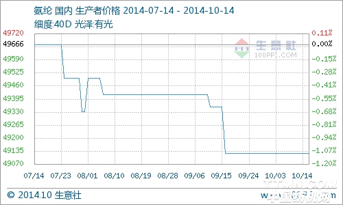 近期,国内氨纶市场走势平稳。目前,40D规格的主流商谈区间维持于45000-50000元/吨,实际成交多偏低区间;而20D规格的氨纶商谈区间位于56000-63000元/吨。 下游在国庆假期节后基本已经完全恢复正常开工,部分行业良好的开工状况下,刚需明显。同时目前下游企业和经销商手上库存不多,所以支撑氨纶价格重心维稳。 生意社分析师认为,尽管有新增产能即将陆续投产,市场预期普遍偏弱,不过供应量的完全释放尚需时日,短期内在需求尚可的情况下,氨纶走势预计仍坚挺为主。