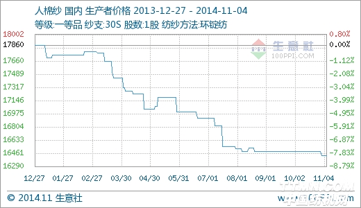 据生意社人棉纱价格监测,受原料市场及下游影响,最近三个月人棉纱一直处于下跌趋势,原料市场价格趋于稳定,终端市场需求积极性不足,市场人士多看空后市。
